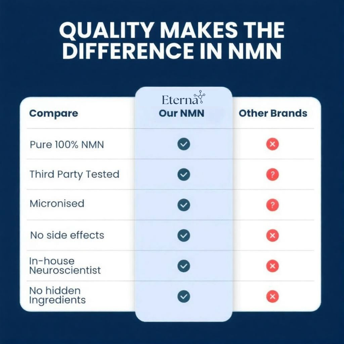 Whether you want to stay sharp at work, keep up with workouts, or simply feel younger for longer, Eterna NMN Pure Powder helps you perform at your best — naturally.